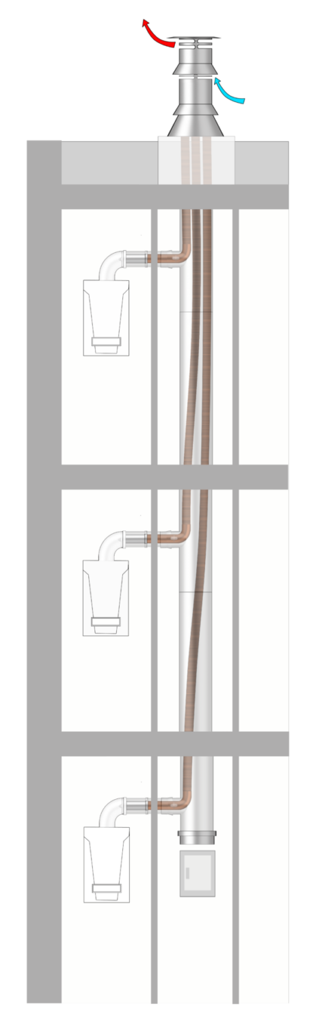 Le Techna-Flex 3CEpi, solution brevetée et sous ATEx n°3276_V1, est un système d’évacuation de fumée collectif étanche, conçu pour les chaudières à condensation THPE (haute pression) et les immeubles de logements collectifs, en rénovation ou neuf. Les conduits du système collectif Techna-Flex 3CEpi, se composent de tubages flexibles en PVDF et d’une paroi extérieure en inox 304, assurant à la fois l’amenée d’air comburant et l’évacuation des fumées, pour des températures allant jusqu’à 160°C.